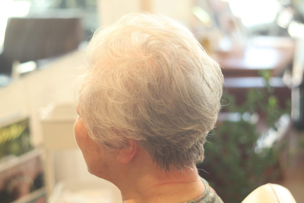 白髪染めをやめてから、きれいな地毛がすっかり定着しています。